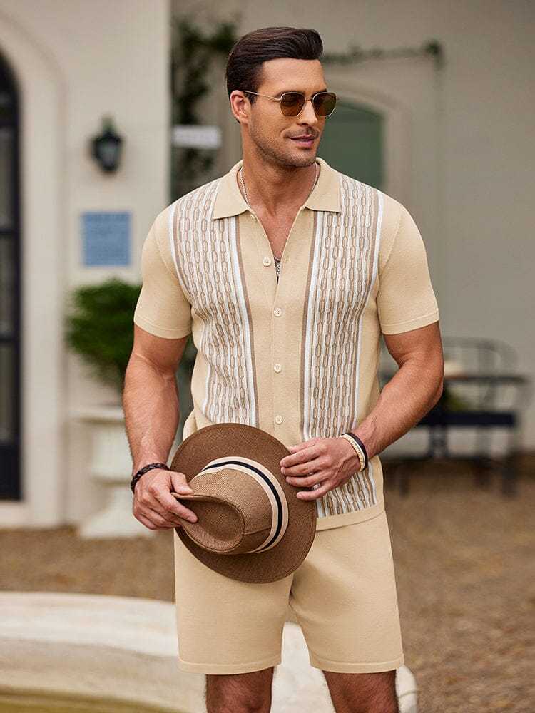 Details: Designed with turn down collar, knit textured vintage contrast design, button closure stylish summer casual shirts. The beach shorts features elastic drawstring waist, two slant pockets and one back pocket perfect for storing phones, sunglasses or gadgets.